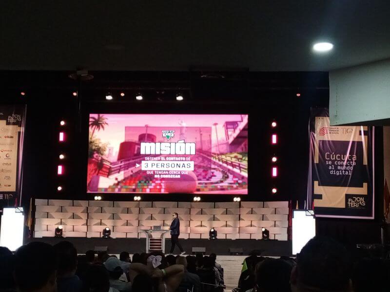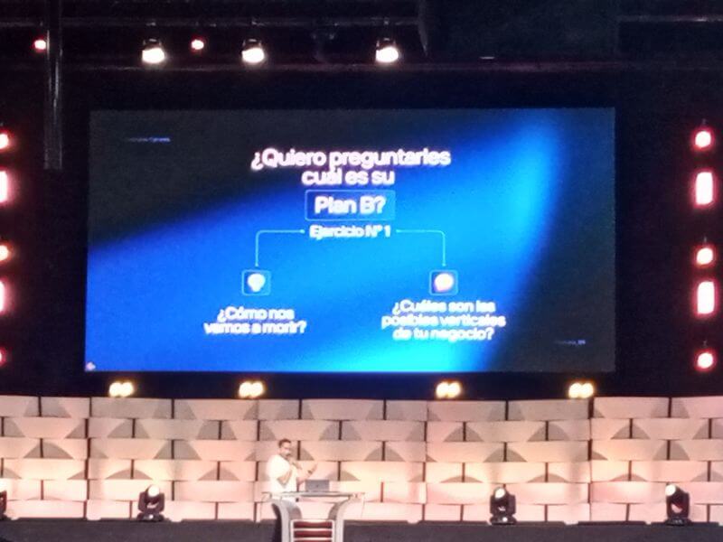 Entró con una naturalidad tan auténtica, tan sin poses, que el auditorio bajó la guardia al instante. No se escondió detrás de slides sofisticadas ni de frases de libro. Habló desde la calle, usó en sus diapositivas el tema de San Andrés y habló desde la vida real de quienes emprenden con miedo, con facturas por pagar, con proyectos que dependen literalmente del próximo cliente.