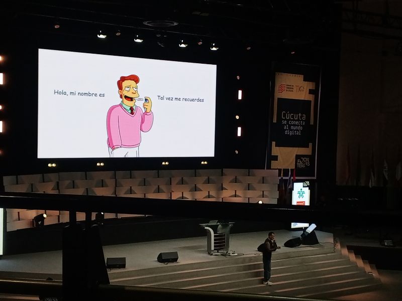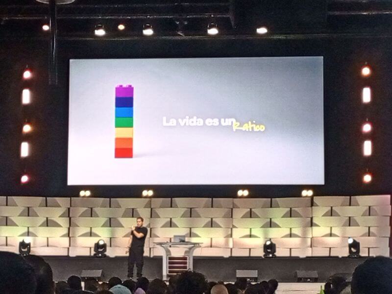 Cuando subió, intentó cambiar la diapositiva con un control remoto que —para desgracia suya y risa del público— no tenía baterías. Ese pequeño momento espontáneo, lejos de incomodar, hizo que todos conectáramos aún más con él. Risas por toda la sala, una mirada cómplice del speaker y el típico comentario que solo alguien con tablas puede decir sin perder la compostura. Fue un arranque perfecto.