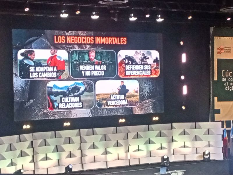 Su charla giró en torno a los negocios inmortales, a la importancia de diferenciarse, de dejar de competir por precio y empezar a competir por valor. Pero lo que realmente convirtió su intervención en algo memorable fue su manera de contarlo: cálida, directa, llena de humor fino, pero también cargada de esa contundencia que no deja espacio para excusas.